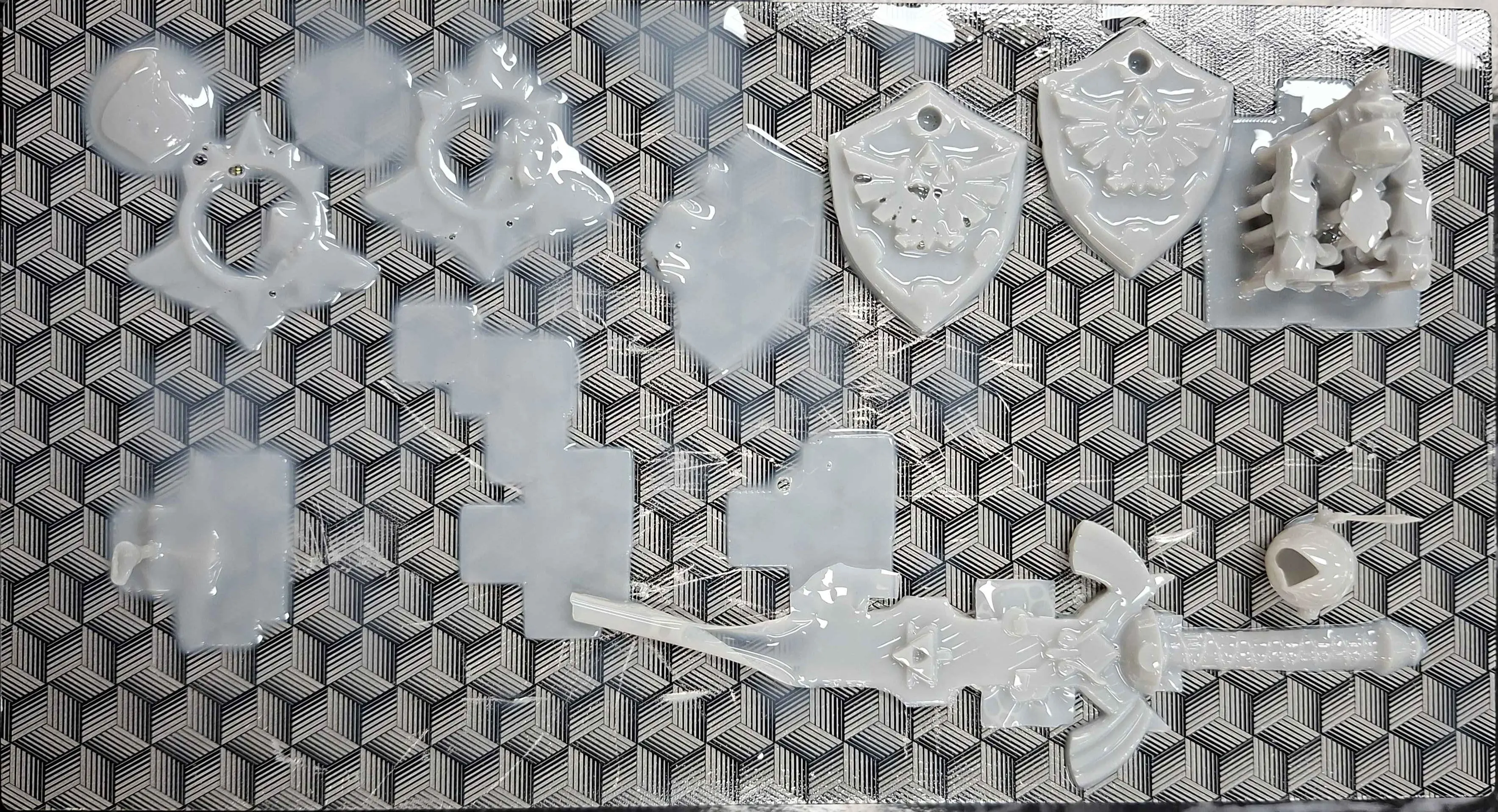 因為我要實驗他需不需要支撐,我設計成一隻沒支撐,其他都有。成品出來的時候發現,帽子消失了。帽子的結構是一個拱橋的形狀(不是真的拱橋,只是有下凹的拋物線),而光固化是一層一層倒著印,理所當然的印不出來拉。